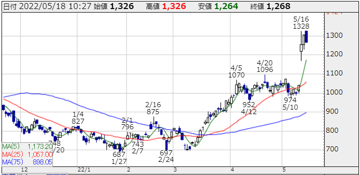直近の決算発表では、今期経常は44%増で2期連続最高益、6円増配の快挙を発表。サプライズ感もあり順当に株価も急伸。ただ、地合い悪が続いている印象で、なかなか積極的な買い入れをする投資家が目立たない印象。世界規模でのリセッション懸念が生じているの致し方ない部分もありますが、もう少し悪材料を織り込んだ流れになれば物色対象になり得るポジションがある銘柄と判断。短中期狙いで含み損が広がる様であれば長持ちにシフトするイメージでの投資が理想と考えております。
