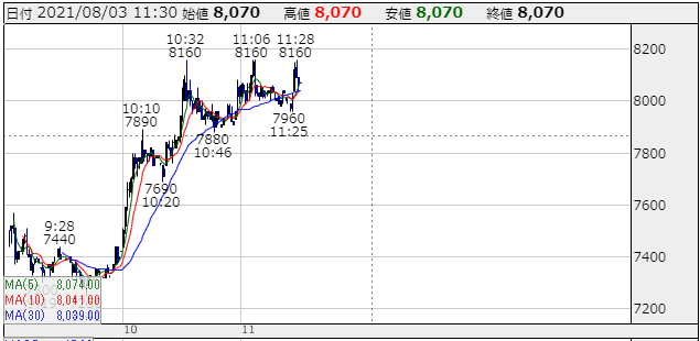寄付き7450円から8160円!300株購入して500円抜き!15万円の利益です!!!