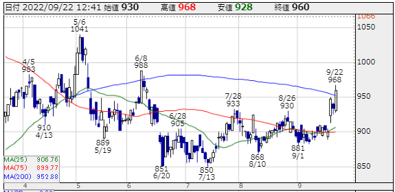 閣内では23年春からの鉄道駅バリアフリー料金制度始動が業務を好転し、ーム先端部材を鉄道各社向けにカスタマイズし拡販中。海外市場でも23年12月期も北米堅調。懸念された原燃料高を価格転嫁で吸収し営業増益となった。12月期通期を為替レートを1ドル=112円に置いているため今後円安再進行で為替メリットさらに期待される。さらに「シェール革命」によってLNG生産世界トップに位置する米国から欧州へのLNG輸出が急増するなか、同社はシェールオイル向け採掘用ホースを手掛けていることが今日の上昇につながった模様。重要イベント通過待ちの物色意欲が無い相場においてこの上昇が出れば短期的に更に資金が集まる可能性が高いので投資妙味ありと判断。