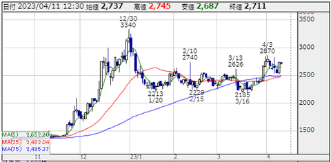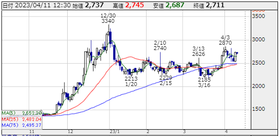 遊技機向け画像処理半導体が増加。終盤ドライブレコーダー関連収入や開発キットが伸び、3期ぶりに営業黒字化。小サイズ、低消費電力、高性能の次世代AIプロセッサー回路設計や3Dカメラは食品産業向けに用途開発で好材料視されている。バンダイナムコセブンズと共同開発したエンターテインメント画像処理プロセッサ「RS1」を搭載したジーグ社の遊技機販売の累計が10機種ならびに10万台を突破したと発表、材料視された。「RS1」は、遊技機におけるノウハウと、同社のグラフィックス技術を融合することにより、遊技機業界で初めてリアルタイム3Dエンジンと高性能・高圧縮動画エンジンをワンチップに統合したエンターテインメント画像処理プロセッサで今後の販売展開に期待され上昇トレンド入りになった。ただ株価はかなり荒っぽい展開で2000円から3000円の間で乱高下しているため販売に関する情報次第で大きく現状と乖離する可能性もあり投資経験のある方におすすめします。
