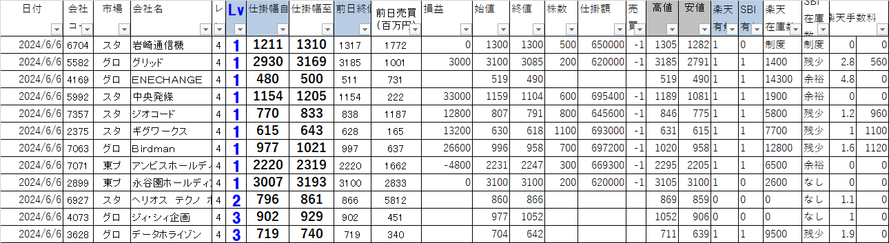 2024年6月6日 今日の寄り引けシステムトレードの損益を公開します