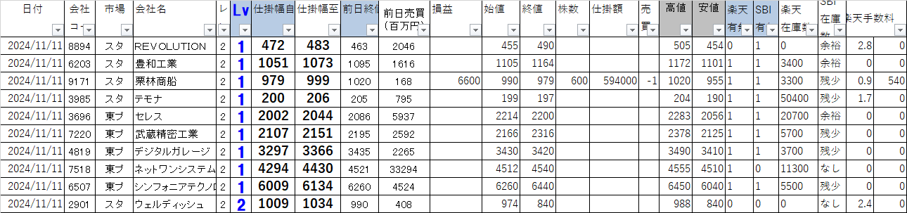2024年11月11日 今日の寄り引けシステムトレードの損益を公開します