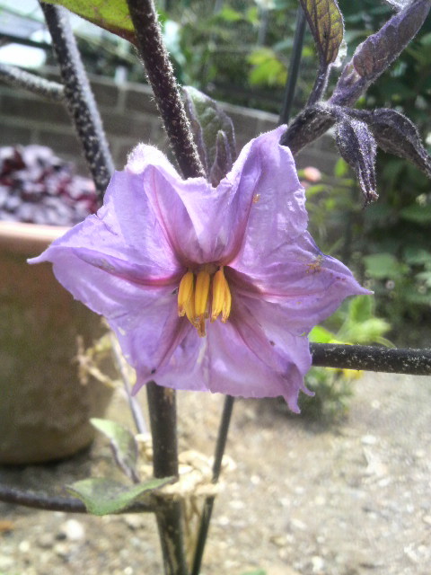 庭の片隅の家庭菜園の野菜に花が咲き始めました。