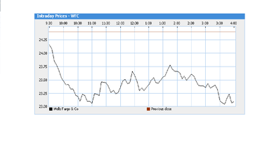5月の消費者物価が予想に沿った落ち着いた動きであったことや、原油価格がわずかに持ち直したことから、午後2時半ごろには58ドル程度上昇しました。しかし、スタンダード・アンド・プアーズ社による金融株の格下げや、オバマ大統領の金融規制改革案が金融株に重石となりました。ウェルズ・ファーゴの株価の動きがその経緯を物語っています。