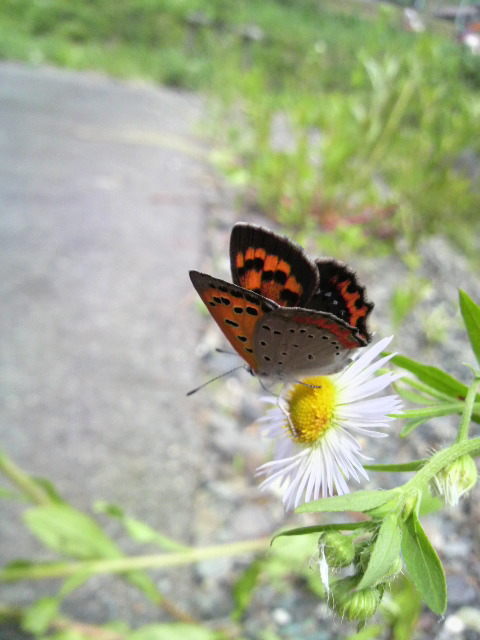 たぶんベニシジミだと思いますが、蝶自体は珍しくもなんともなく、どこにでもいる蝶です。