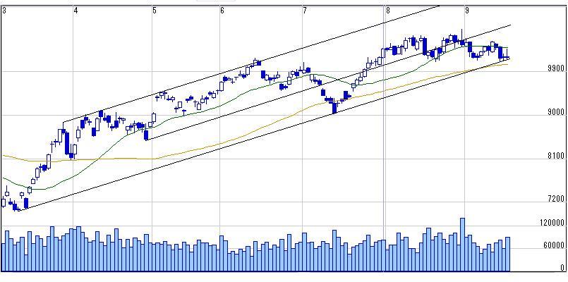 ・画像2の下値ライン10170近辺と画像1の真ん中ライン10140近辺、週足下値支持ライン10120近辺が重要な下値支持ラインと考えます。