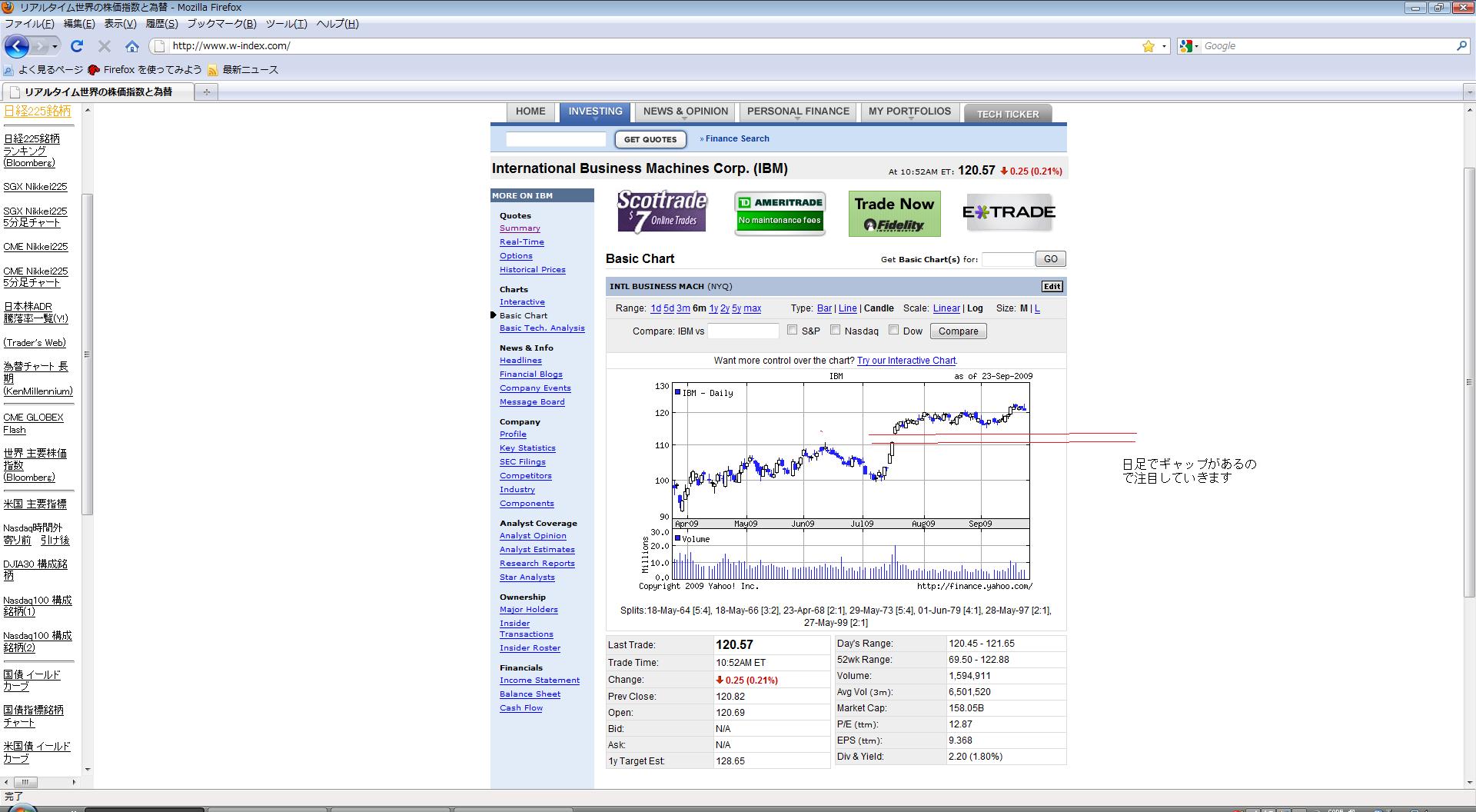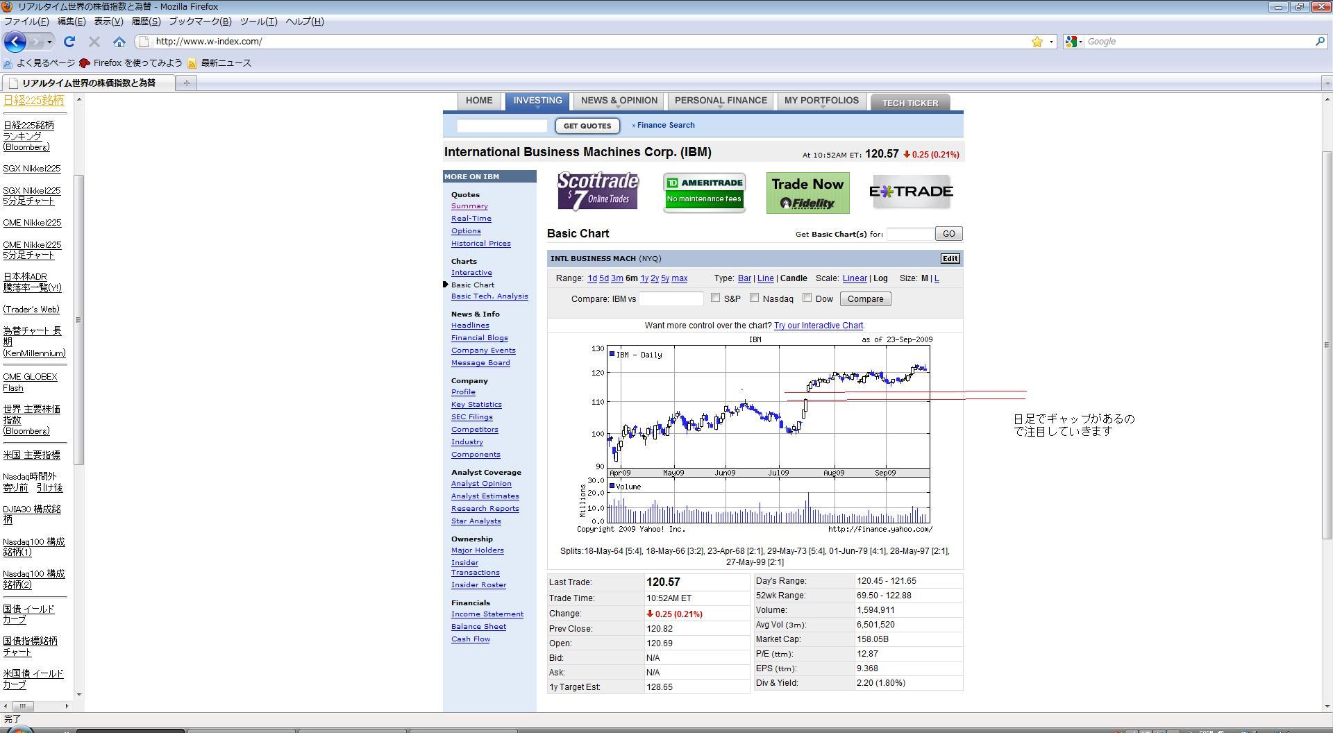 今ダウで一番の値がさ株のIBM(ダウは値段を銘柄数で割っているので値がさ株の値段動きが影響をあたえやすい??)