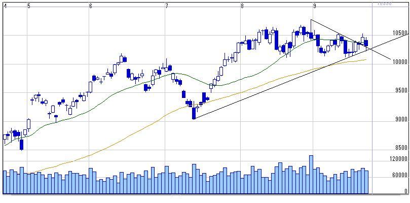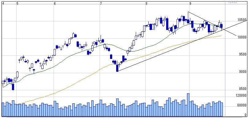 ☆三角もちあいは昨日上放れるも、今日は再度割りこみ、引けでは回復、、、どう解釈したらよいものか^^;