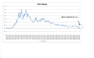 そのVIX指数ですが、2008年10月17日に70.33という高さに達した後、急落を続け、今年9月15日には23.42となりました。