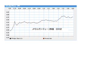証券アナリストによる投資判断の引き上げもあって、金融株が相場を牽引しました。4.6%上昇したJPモルガン・チェースのザラバの動向が、その様子を示唆しています。