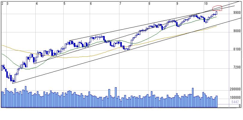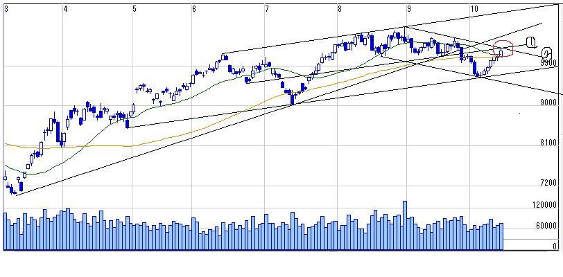>2本のトレンドラインが交わる10330付近(明日時点)が重要なポイントだという目線は変わらず、、、