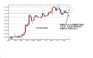 早朝の為替が1ドル91円程度と、多少円安方向へ振れているようですが、急激な動きのようには見えませんので、株式市場への影響は限定的だろうと考えています。ただ目は離さないようにしています。