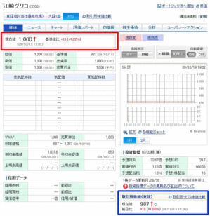 今回はメルマガで紹介した銘柄のうち、江崎グリコ(2206)のみ出来高がありました。しかも1000株だけです。昨日19日株式市場での終値は987円、夜間取引では1000円となりました。