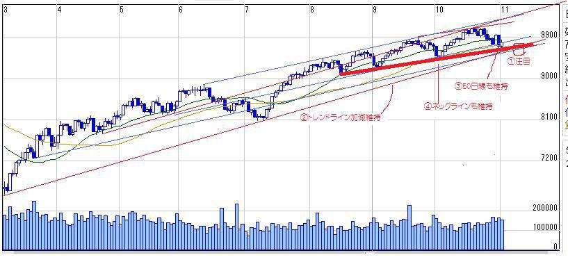 ①3月からのトレンドラインを割り込む