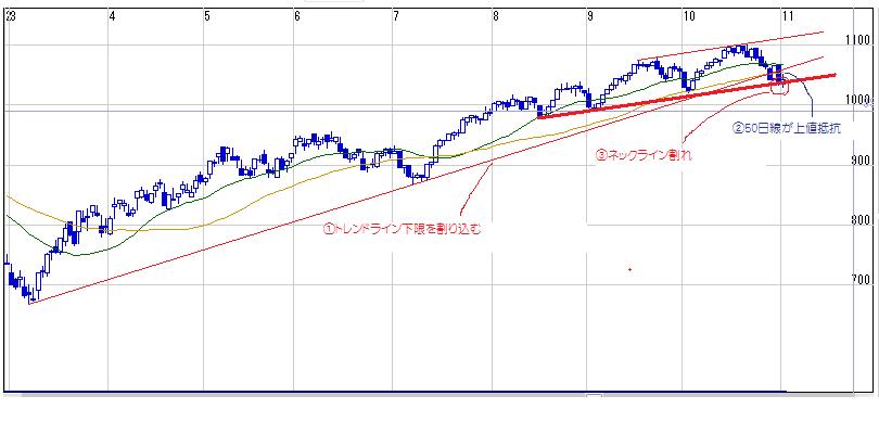 11・2時点でのダウ、SP500のチャートです。