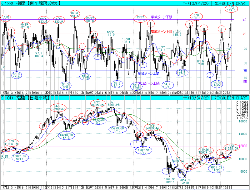 4月2日の騰落レシオ:149.6は過去15年の加熱第2位だとか。
