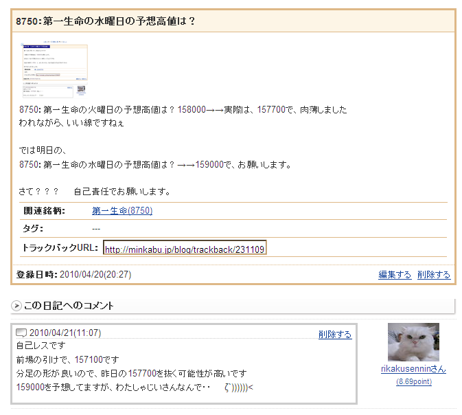 8750:第一生命の水曜日の予想高値は?→→159000と書いてましたが、