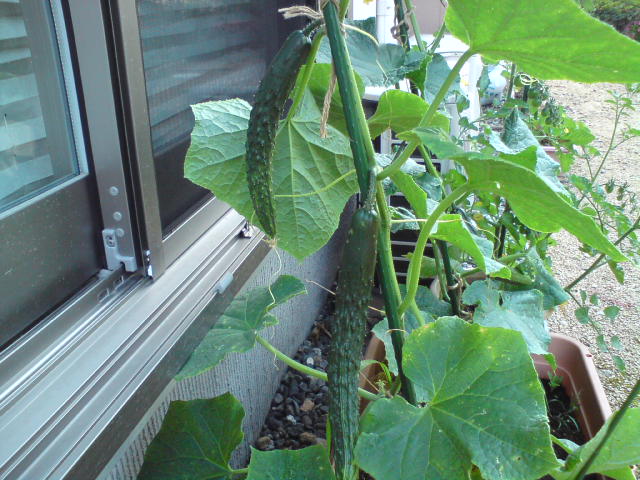 キュウリの成長の早さには驚かされます。実がなっているな~と思っていたら、あっという間に大きくなりました。