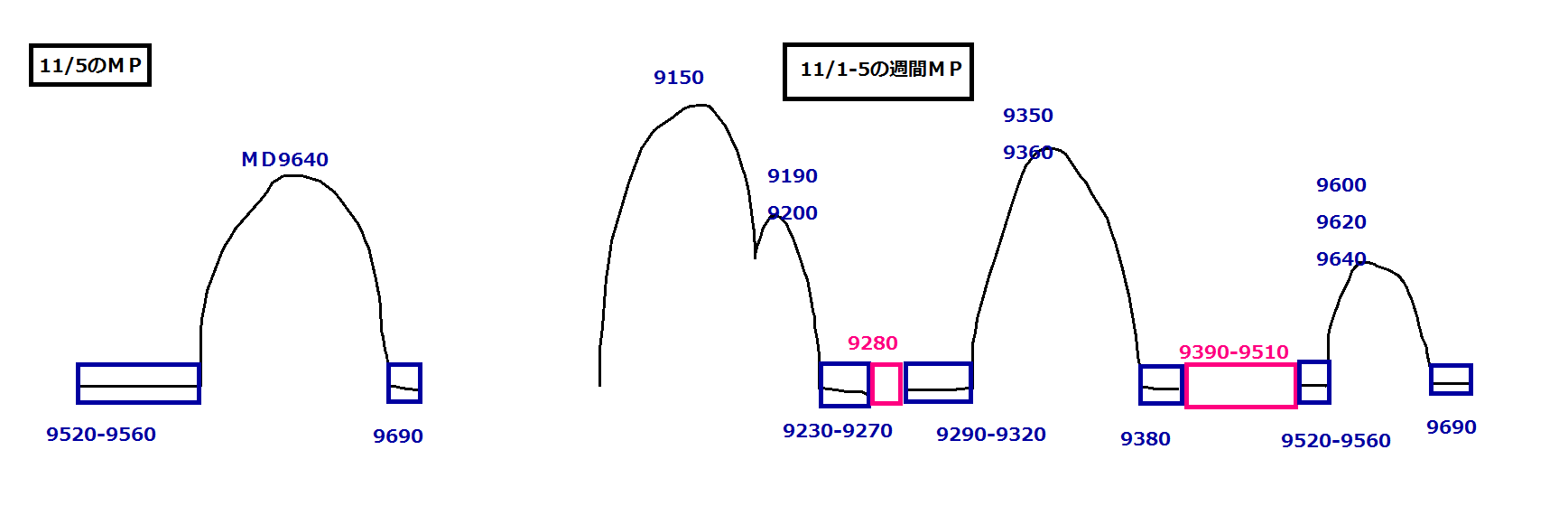 とりあえず上値の第1ポイント9860は突破、次の上値はトレンドライン上限が重なる9930~9980のポイント、これをこえたらさらに次に10060~10100あたりを見ればいいと思う。