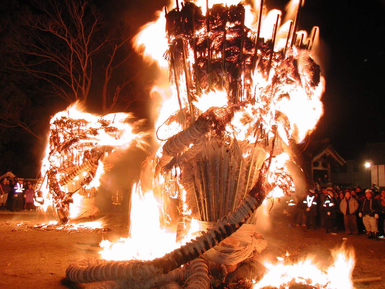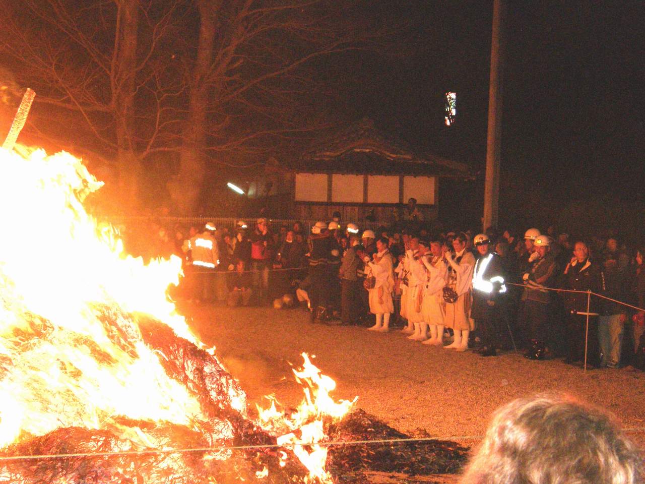 大松明は茅原区・玉手区の住民が総出で作り(直径約3メートル、