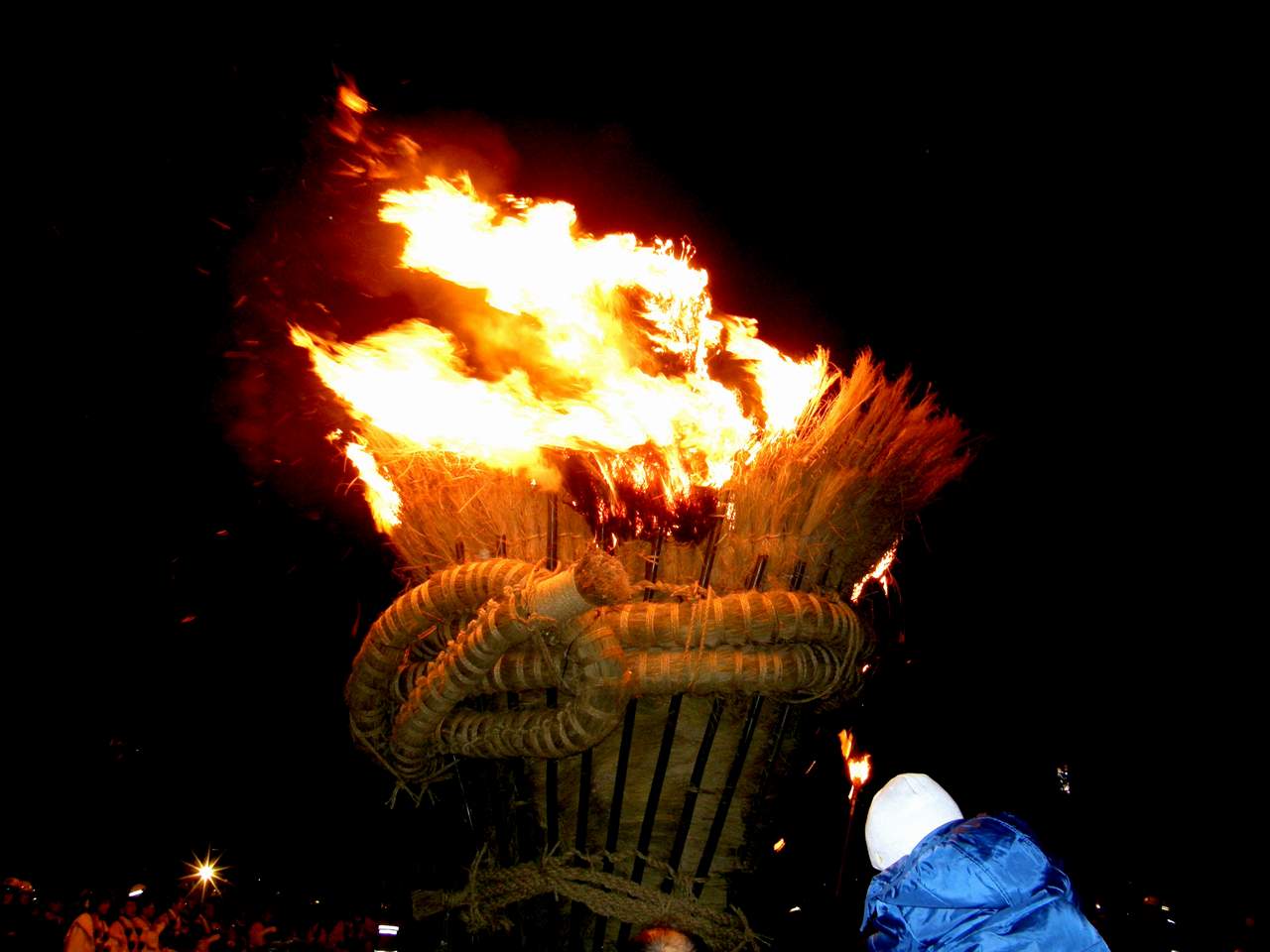 高さ約6メートル、重さ約1トン)点火後の燃え方で今年の豊作を予想するとの事
