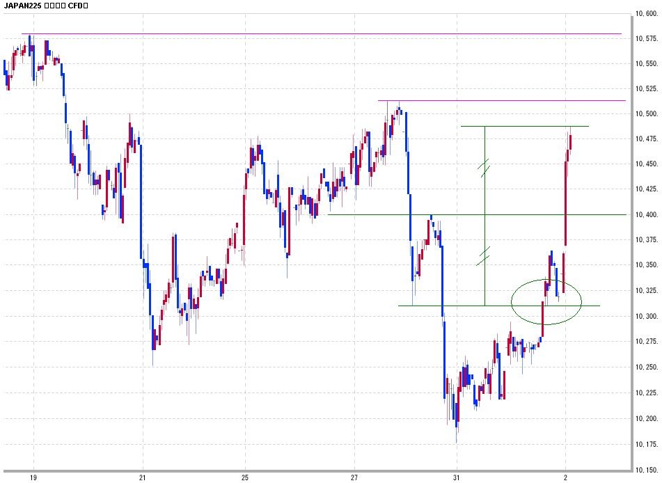 アイランドリバーサル形成(アイランドリバーサルについては過去日記「テクニカルの基本・窓」参照)