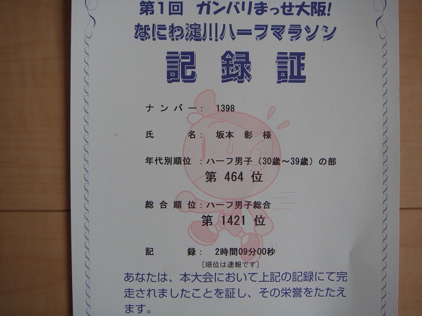 記録は2時間9分ですが、30代男性の参加人数800人中