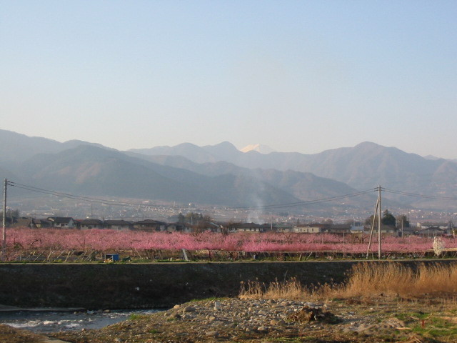 遠くの山の上にちょこっと見えるのが富士山です。