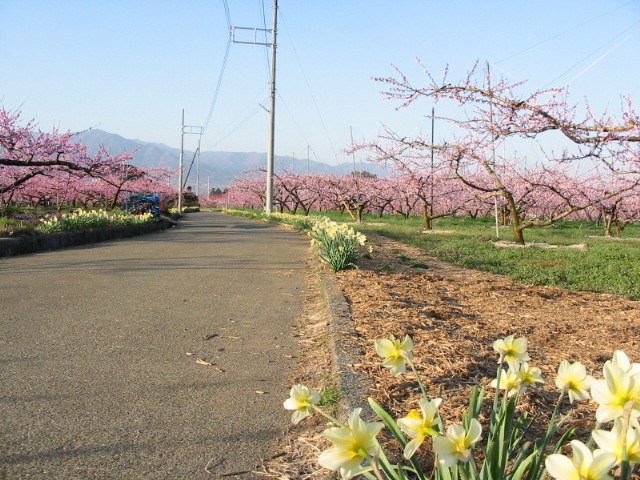 近所の畑道沿いに「スイセン」が綺麗に咲いています。