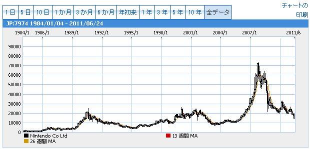 ゲーム機の発売時期と株価上昇が似たような動きです。