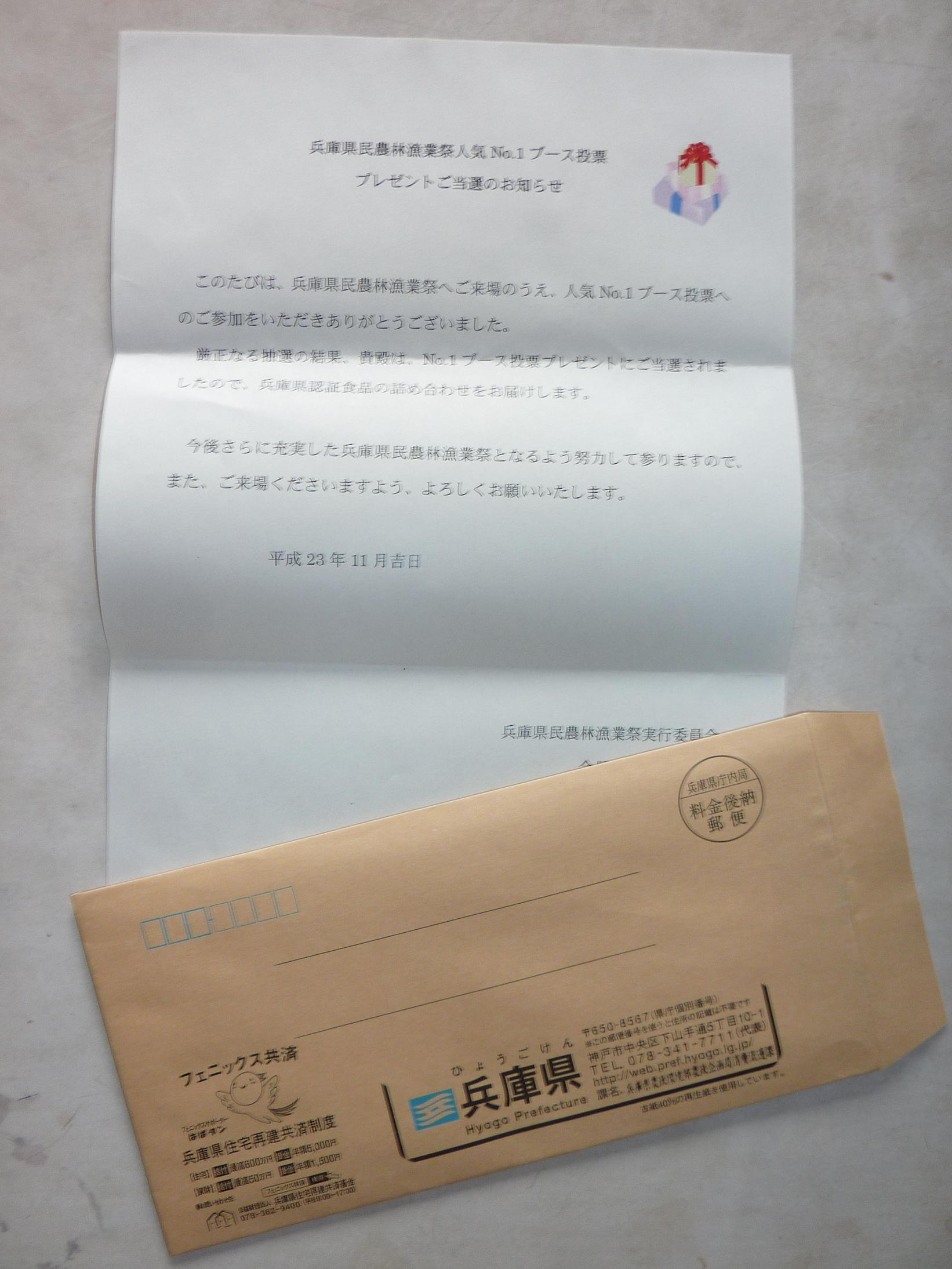 農林漁業祭で書いたアンケートのプレゼントに当たったのでした~![]()