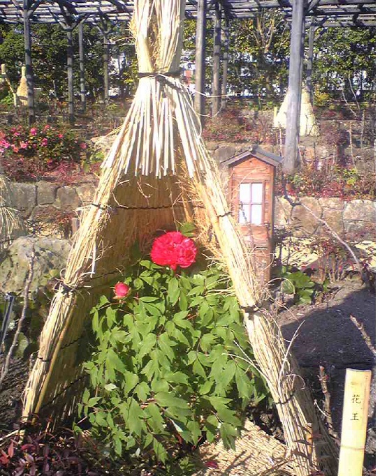 きれいに咲いていますね、一応雪囲いなのでしょうか?