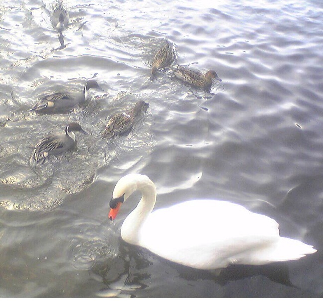 白鳥はゆったり、カモちゃん達は一生懸命にご飯探しですかね。