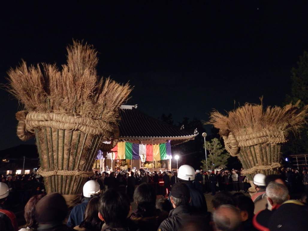 御所市の吉祥草寺で茅原の大とんど(PM8:20点火)が行なわれた。