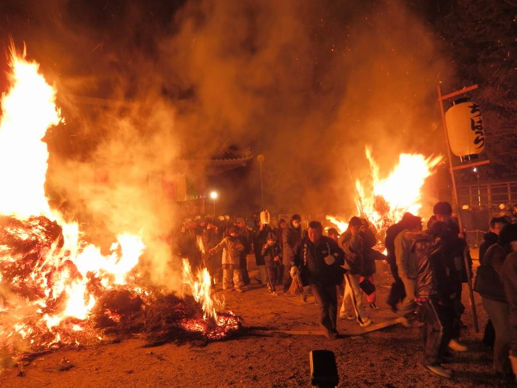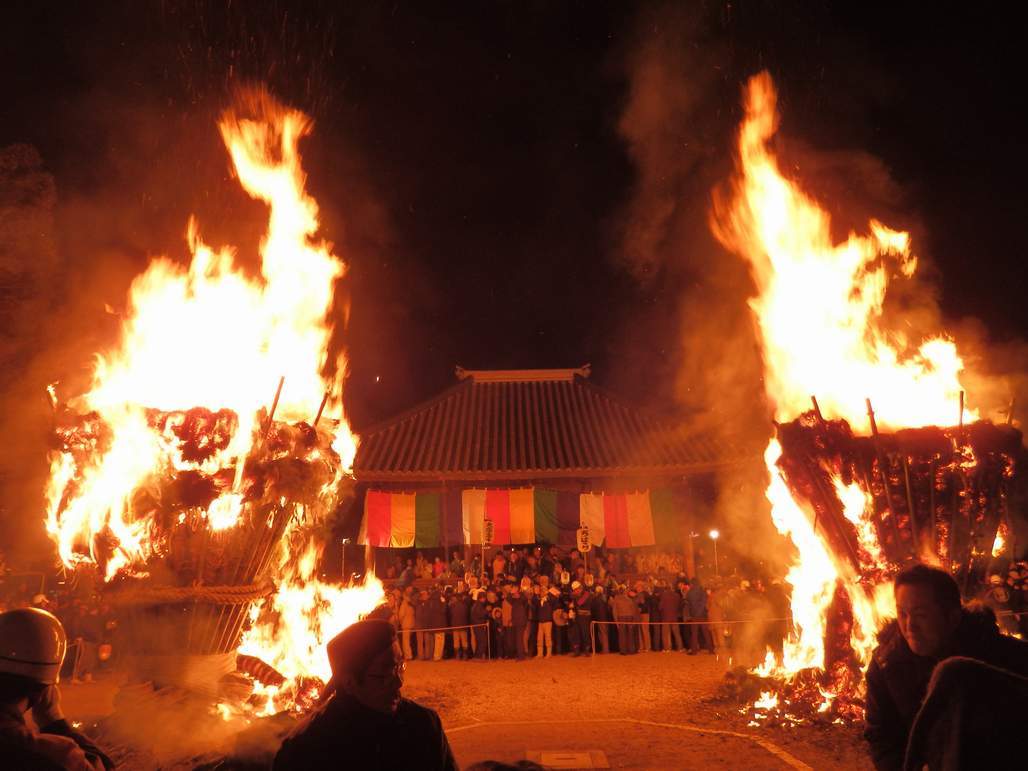 境内に作られた雌雄一体のトンド(大松明)を燃やし