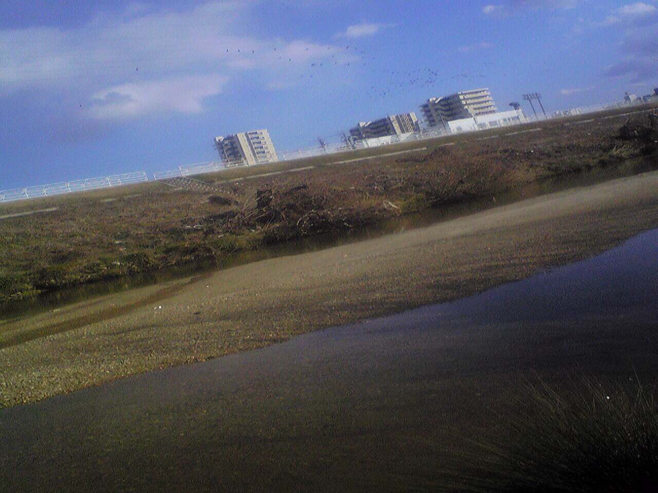 天白川にボラが遡上し、野並橋より上にいた。カワウがすごい数飛んでいた。人に追われたのだろう。