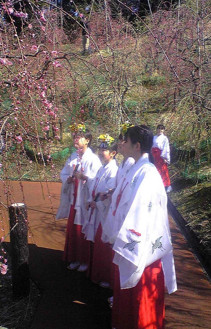 大縣神社梅園では、2月下旬より紅白300本のしだれ梅が咲き多彩な行事を行います。