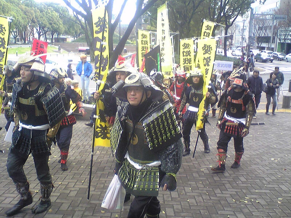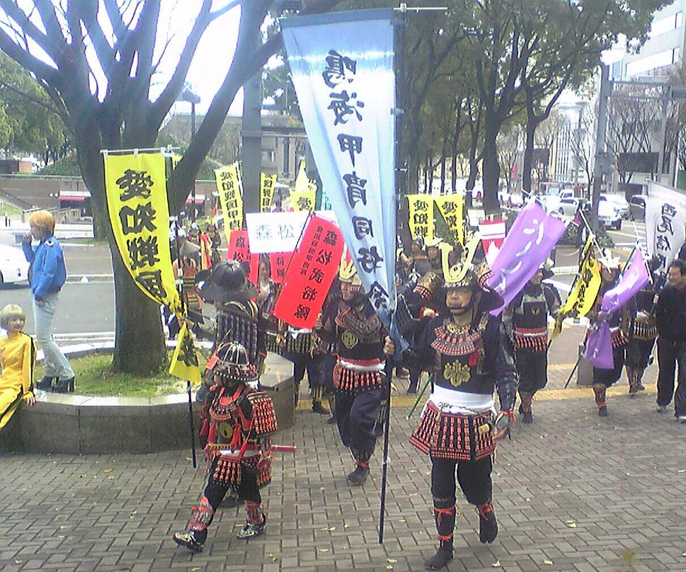 戦国甲冑隊参上、すごいオジンパワーに圧倒されます。かわいい甲冑隊員も発見。
