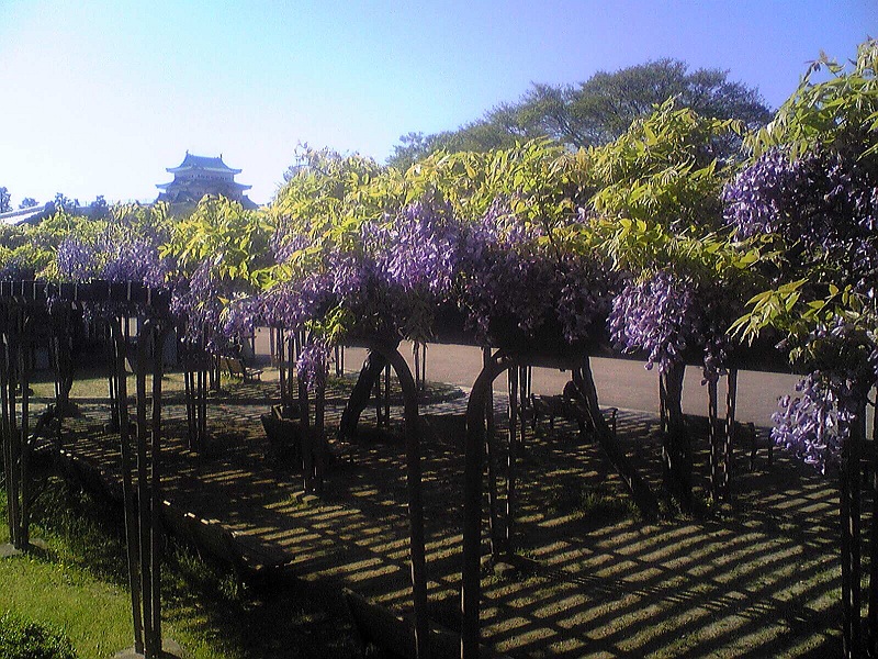 名古屋城の藤棚も満開。牡丹も見頃でした。八重桜も満開ですが、登れない場所で咲いています。