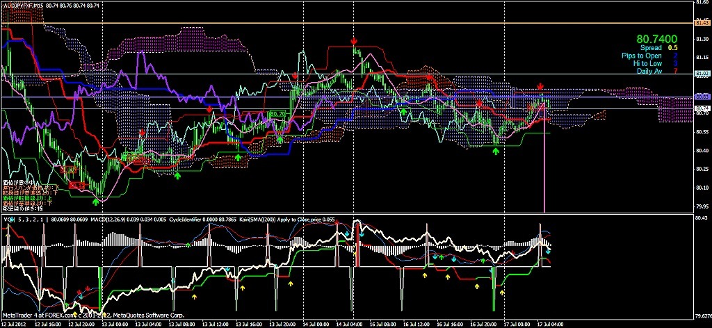 えーと、遅行線が基準線・転換線を抜けた方向にエントリー? 待っていられるかな?