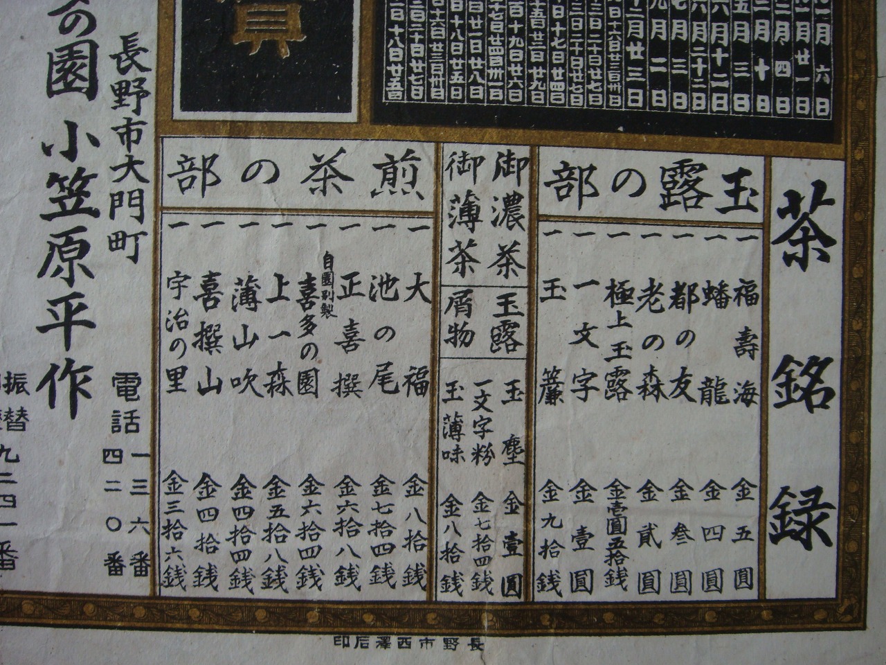 引き札から推定してみると善光寺大門の製茶問屋「喜多之園」も早くから狭山とも関係を持っていますが、この地に自園を持ったのは明治後期でしょうか。