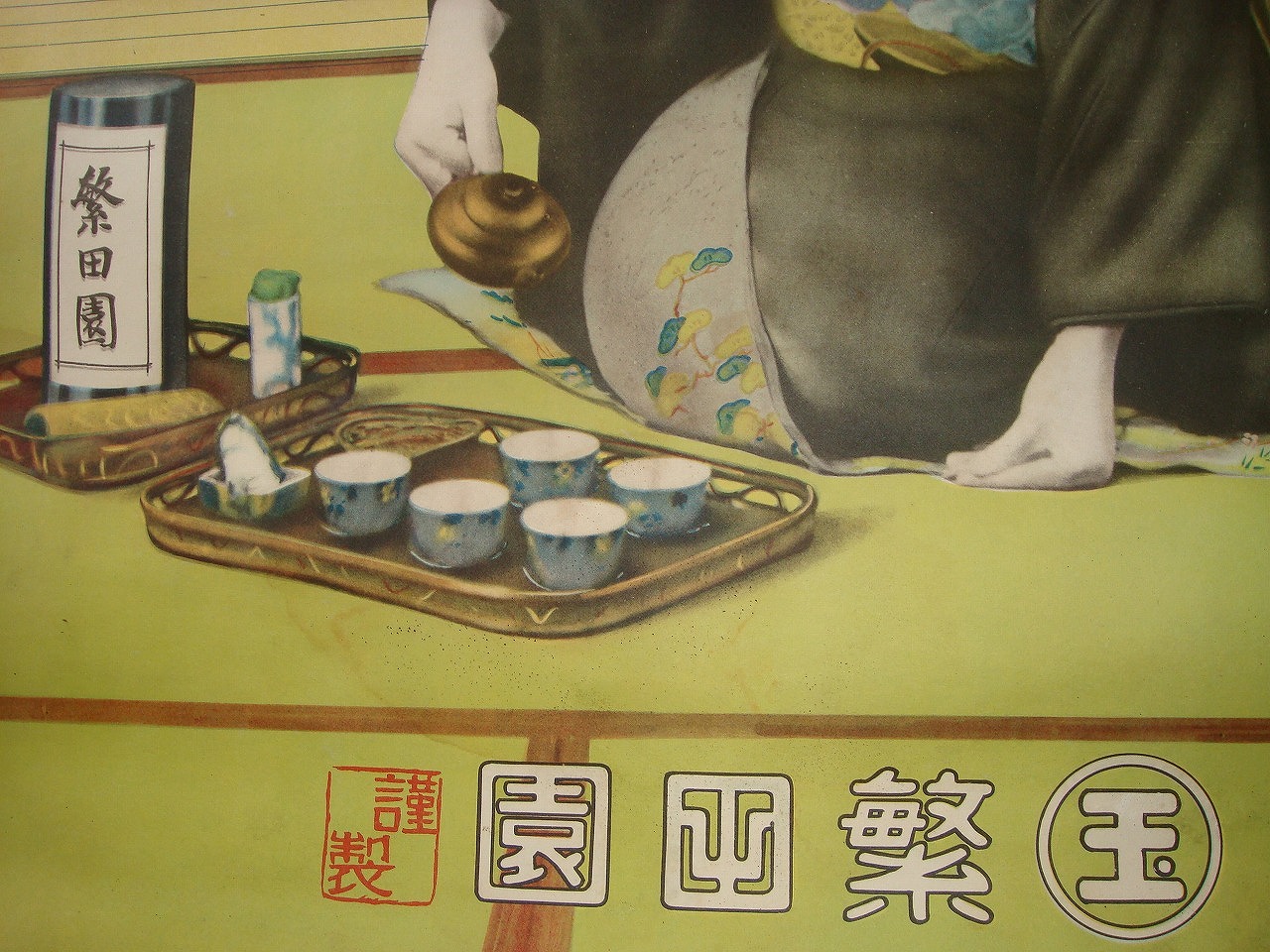このポスターは大正5年、秋田市茶町扇ノ丁に支店を開設した頃のもので、最初は商標が「丸に玉」現在は「丸に州浜」 狭山が国内における茶葉の産地としては最北であることから、東北地区に販売拠点を拡大しています。