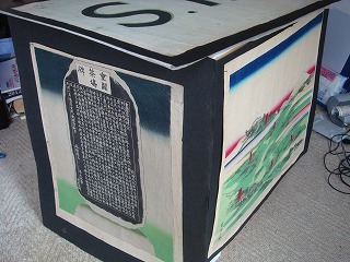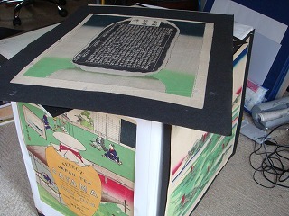 狭山茶 数枚の 輸出用茶箱ラベル の貼られ方