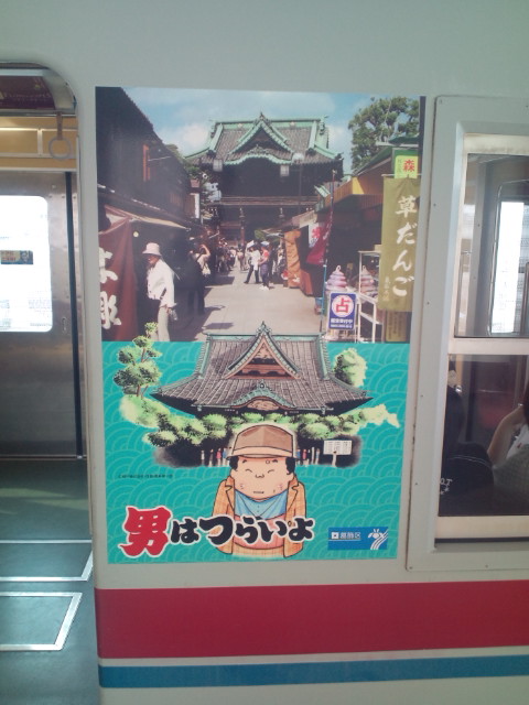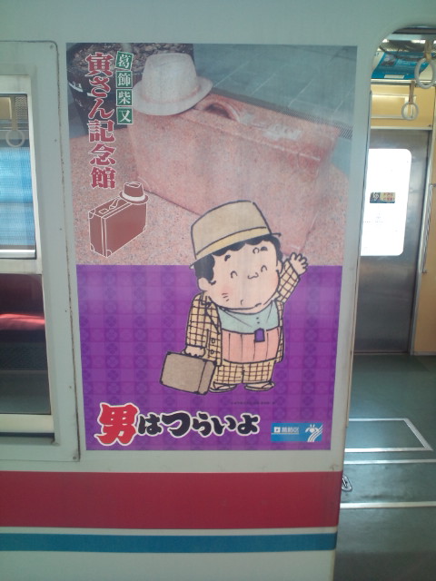 あと、おまけですが、柴又までは京成電鉄に乗っていったんですが、寅さんのかわいいイラストが車体にプリントされていたので、その一部をご紹介します。
