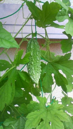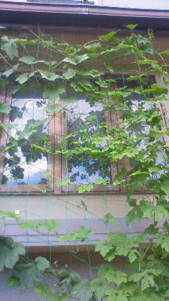 担当者は「いろいろな植物を植えると順番に盛りを迎えるため、長い期間、日影を作ってくれるし、まちまちの大きさの葉がカーテンを密にしてくれる」と「変わり種」の長所を語る。そして、「何と言っても見て楽しい」と付け加える。カボチャとヒョウタンは茎が固く風に弱いが、育てば、葉が大きいのでゴーヤーより遮光効果が高いという。