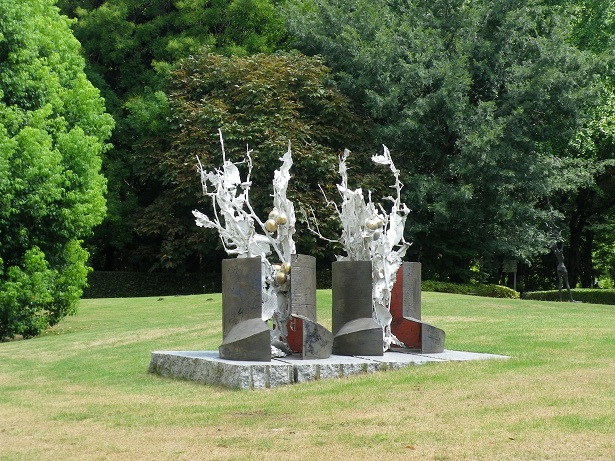 平日なので空いています。ここで一休み。美術館の周りに彫刻があります。