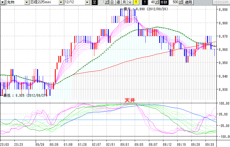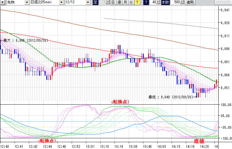 日経225mini先物チャート(下) : 48ティック足