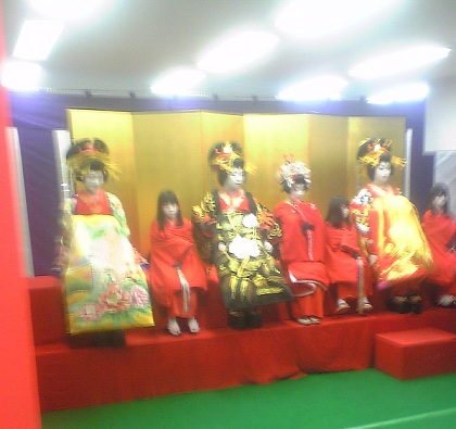おいらん道中の集合まえ、すごい人がいました。トイレがなく、大須の電気街に行かなくては。ダースベーダーや人気の団子屋さん、大須ういろうなどありました。