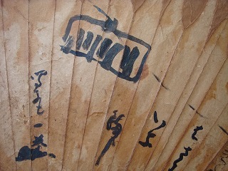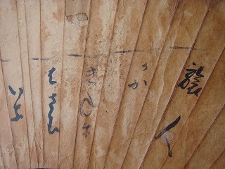 の農機具で、手で紐を引いたり、風に吹かれて鳴子に付け