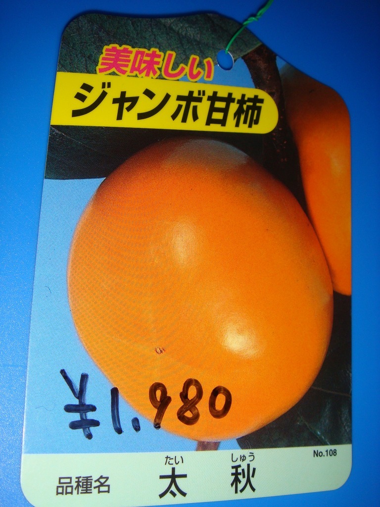 念願の甘柿の苗木を記念樹に。品種は「太秋」である